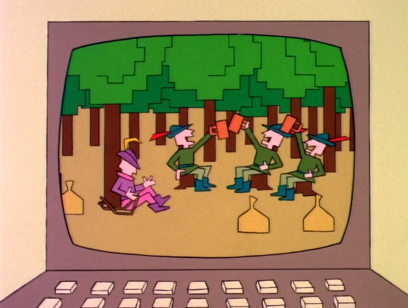 While typing his book report, Schroeder also imagines a video game, so we’re treated to animation that depicts 80s-style graphics.